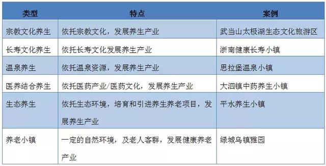 当前康养小镇的类型主要包括以下几种:宗教文化养生型、长寿文化养生型、生态养生型、温泉养生型、医养结合型、养老小镇型。