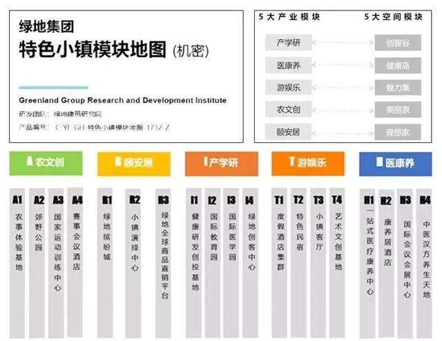 2018年,在总结多年项目经验的基础上,绿地出台了《特色小镇模块地图》,对“绿地系”特色小镇的规划模块、产品模块、风貌模块、开发策略等内容进行了系统指引。