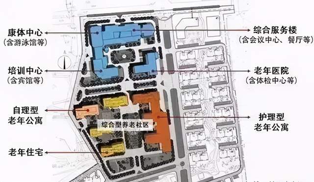 综合型养老社区是指为老年人提供的,包含养老住宅、养老公寓、养老设施等多种居住类型的居住社区。社区中除了有为老人提供的居住建筑之外,还会有老年活动中心、康体中心、医疗服务中心、老年大学等各类配套设施。其开发主体可以是多种多样的,既可以是民营企业,也可以是由政府投资进行建设。