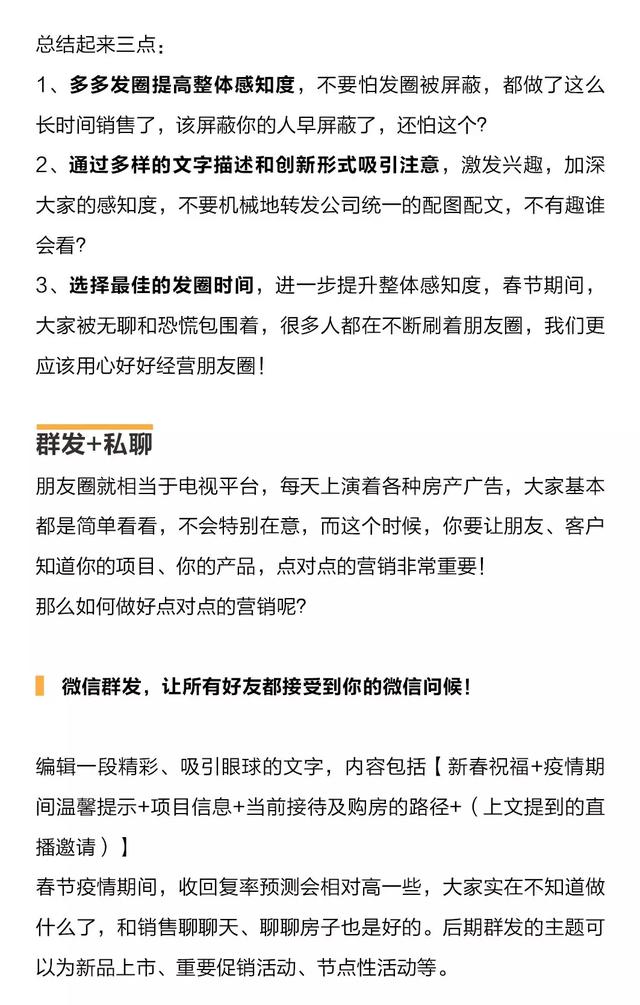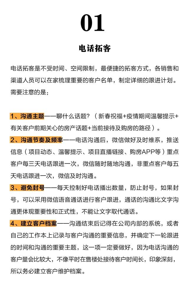 现在全国正处于新型冠状病毒疫情的特殊时期,希望大家做好预防,保护好自己。目前也有不少企业陆陆续续复工,各类企业在这期间面临的压力很大,作为房地产的营销同事,如何在这期间做好拓客呢?