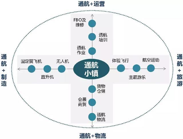 通航+制造即“通航机场 生产区+配套区”模式,主要是打造通航垂直整合产业发展模式,主要发展包括飞机的研发、总体设计、零部件加工、发动机与机载设备研发生产、飞机总装及交付试飞。