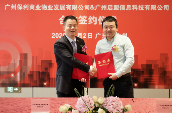 2020年1月2日,广州保利商业物业发展有限公司与广州启盟信息科技有限公司(以下简称“爱物管”)在保利天幕广场进行了战略合作签约仪式,宣布未来双方将携手并进,优势互补,加快物业与人工智能、大数据等科技手段的融合,并在市场拓展方面互惠互利,共同为客户提供更智慧高效的场景式服务体验。