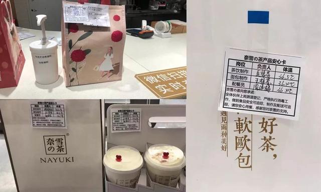 外卖方面,奈雪的茶门店售卖的软欧包,实现“封闭式”装袋/盒后,再放进面包柜里进行陈列售卖。外卖配送员将餐点送至指定位置,尽量避免面对面取餐,外卖产品则新增外卖安心卡,登记各环节制作人、配餐员、配送员姓名及实际体温,做到食品安全、制作及配送关键环节可追踪。