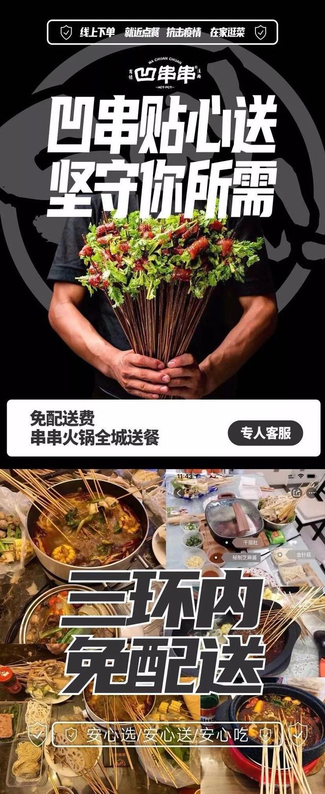 笔者注意到,凹串串也在第一时间推出了外卖服务,基于凹串串是陈列式的就餐形式,产品非常符合外卖属性,特殊时期调整起来更快速高效。