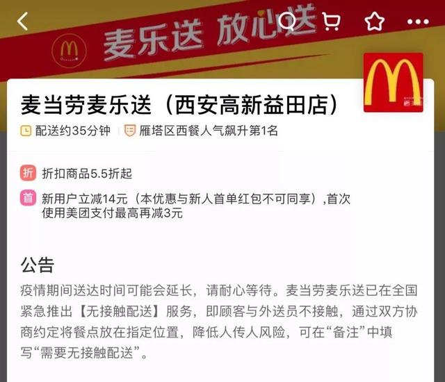 疫情期间,很多餐饮企业及时推出外卖服务,通过外卖平台、小程序、微信朋友圈等在线平台进行下单,如奈雪的茶、必胜客宅急送、肯德基宅急送、麦当劳(需求面积:250-500平方米、已进驻467家购物中心、今年计划开500家)麦乐推出“无接触”配送服务。