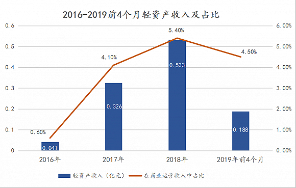 自2014年起,宝龙商业管理向由独立第三方拥有开发的零售商业物业提供商业运营服务,在2016年、2017年及2018年及截至2019年4月30日止的4个月里,收入分别为0.041亿元、0.326亿元、0.533亿元及0.188亿元,分别占商业运营服务收入的0.6%、4.1%、5.4%及4.5%。