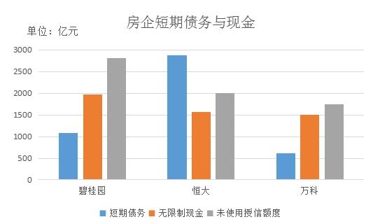 以top3房企为例,截至2018年6月30日,恒大地产短期债务规模为2870亿元人民币。而2018年初至今,恒大地产的总销售额为5011.4亿元。据其半年报披露,截至2018年上半年,恒大库存现金金为1570亿元人民币。