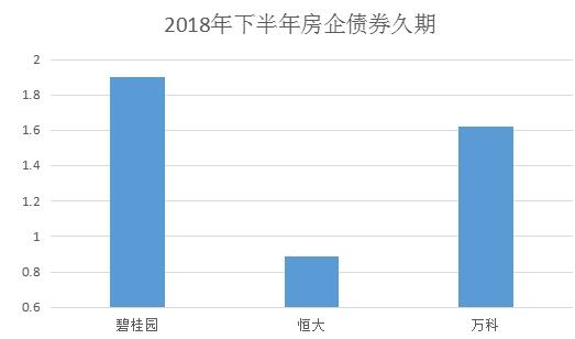 经观点地产新媒体通过房企发债的期限、利率、金额等数据计算,恒大在2018年下半年发行的债券久期为0.889,万科为1.623,而碧桂园为1.902。
