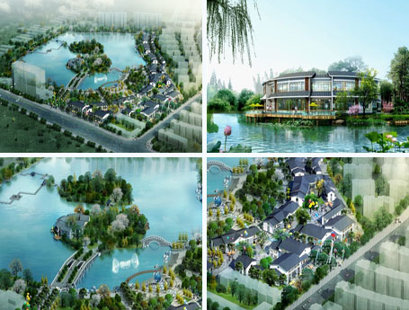 作为公园的有机组成部分,单体式的建筑规划,使得建筑在尺度上与公园的氛围相统一,空间形态灵活多变;多个休闲广场的布置,让商业街更自然的融合入整个公园,不仅仅给消费者或游客提供了休憩场所,也构造成多层次的商业空间,丰富了空间形式,创造出特色形象;街区分段构筑主题,通过展示、广告、雕塑、小品、绿化、花钵、休息座椅等设施的灵动布置,丰富了整体空间情趣,更为商业街注入绿色催化剂,予人安逸、放松、自然优雅的氛围。优美的依水公园景色、多变的特色商业建筑、灵动的街区布局缔造出一条特色的滨水风情商业街。
