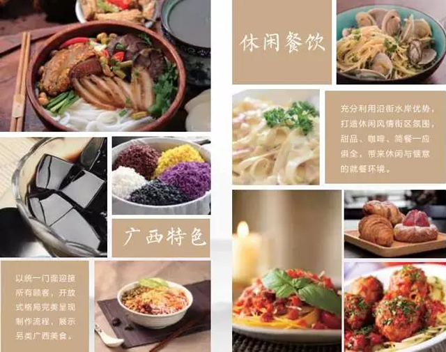 在业态组合方面,益田西街从美食体验、文化娱乐、旅游休闲三个业态全方位、多层次地覆盖顾客的消费需求。其中,餐饮业态占比55%,零售业态占比25%,休闲文娱业态占比20%,旨在打造阳朔商业“美食、文化、旅游”三大制高点:汇集广西特色小吃、休闲简餐、国际美食,打造“美食”制高点;结合传统文化的半开放式戏台,融入阳朔西街特色文化,打造 “文化”制高点;引进国内艺术、民族特色品牌,如书吧、酒吧、茶馆,着力营造小资、简约、舒适的生活氛围,打造“旅游”制高点。