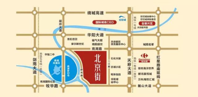 北京街位于成都天府新区城市副中心、华阳核心、锦江河湾畔、南湖风景区旁、古蜀文明政治文化商业中心,据统计数据,华阳区域现有常驻人口约56万,并以每年约20%的的增速递增。