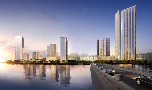 6栋现代建筑风格高层排列在后,高差犹如“弯月”当空,悬挂在南湖、锦江和江安河面之上,将北京传统风格建筑与现代风格建筑完美融合,在天府新区独树一帜,独具标志性同时本身已成江边湖畔的最美风景。