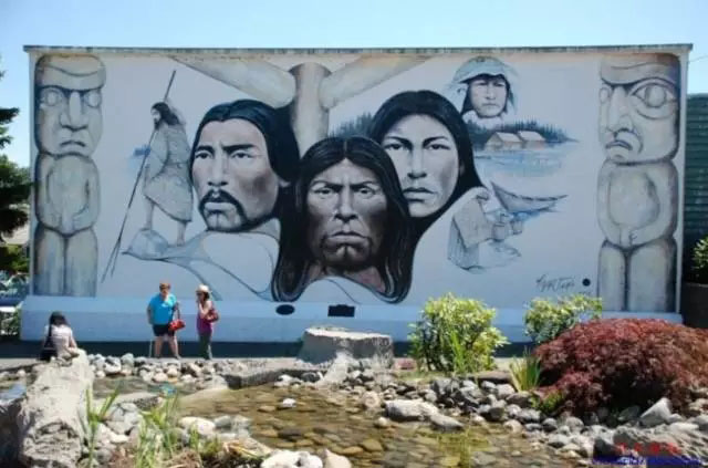 世界著名的壁画小镇倩美纳斯(chemainus)位于加拿大温哥华岛南端城市维多利亚北约80公里,至今约有150年的历史。壁画艺术改变了这个曾经一直依赖林木业为血脉存活下去的小镇,为小镇旅游业的发展注入了新的活力。政府在小镇的转型复兴中起了非常重要的作用,他们启动了小镇复兴工程,邀请世界各地的著名艺术家倾注全力在小镇的墙壁上绘制了12幅壁画(1982年5幅,1983年7幅)。这些壁画主要描述了这座百年老镇的伐木历史和风土人情,是现代艺术与传统遗产结合的典范。逐渐吸引了很多的游客来小镇游玩观光,也吸引了其他的艺术家陆续加入了绘制壁画的队伍,到现在为止已有39幅大型墙壁画(如包括小的壁画大概3000幅左右),8件雕塑,而由此形成了壁画节,随之相关的旅游观光业开始大放异彩,一个默默无名的小镇开始享有户外艺术画廊之美称。