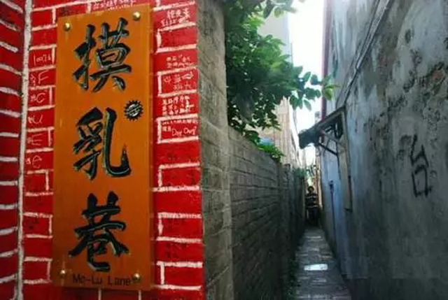 到了鹿港不去着名的“摸乳巷”怎么行,这个狭窄的巷子位于彰化县鹿港古镇北街,是一条有200年历史的条型店屋间的一道防火巷,最窄处还不到70公分,只能容许一人通过。如男女正巧面对面走来,擦身而过时,是你让还是我让,就会出现尴尬的场面,只能跻身而过,所以这条巷子被称为“君子巷”、“护胸巷”,不过广为人知和流传的还是摸乳巷。