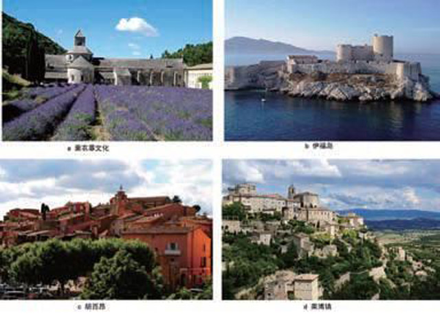 这里文化丰富而浓郁,有 12 世纪时的骑士爱情文化、中世纪的建筑文化,盛产薰衣草,也是法国早期文艺复兴的著名画派普罗旺斯画派起源地及戛纳电影节的举办地。普罗旺斯地区小镇众多,各具特色,共同构成了 " 世界浪漫之都 ",有些因小说故事场景发生地而成名,如小鲁伯隆山区 ( petit luberon ) 是《山居岁月》的故事发生地,伊福岛 ( ch â teaud'if ) 是《基督山恩仇记》中基督山伯爵被关押的地方 ; 有些得益于独特的风景,如施米雅那山区是普罗旺斯的名花薰衣草最佳观赏地,胡西昂小镇是有着 " 红村 " 之称的 mini 小镇,莱博镇则是一座中世纪山城 ( 图 6 ) 。