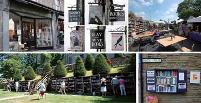 小镇风貌往往是小镇产业特色的空间映射,因此,具有产业特色的国外特色小镇,其空间风貌必然具有强烈的可识别性。如海伊旧书小镇 ( hay ) 是世界上第一个书镇,被誉为 " 天下旧书之都 "。遍布小镇的各种类型的书店、图书馆、图书集市及随处可见的读书场景是小镇给人的空间意象。书店建筑风貌各异,有些书店依山而建,书架就镶嵌在山石上 ; 也有户外书店,只设置收钱箱,自助取书 ( 图 4 ) 。
