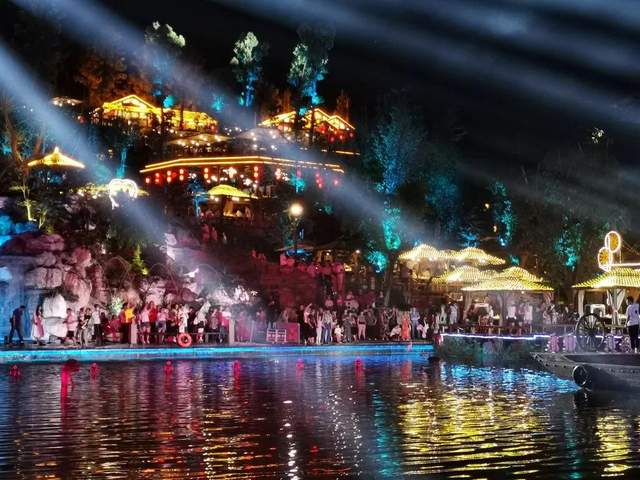 当夜幕降临,新都区天府沸腾小镇玛歌庄园却刚刚开始热闹起来:水波光影中,流光溢彩的灯光营造出梦幻场景;湖边,吃火锅的客人们笑语不断、推杯换盏;湖面上木船荡漾,各种音乐、舞蹈表演吸引着周边食客们争先拍照打卡。