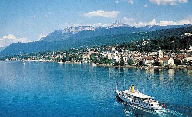 依云小镇位于上萨瓦北部的艾维昂勒邦。小镇沿半圆形湖面而建,背靠阿尔卑斯山,面临日内瓦湖,湖对岸是瑞士洛桑。传说法国大革命时期,一个叫marquisde lessert的法国贵族因喝了依云水治好了肾结石。于是,依云“神水”由此闻名。