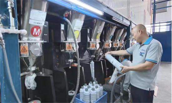 新化县新印科技公司的碳粉生产线。