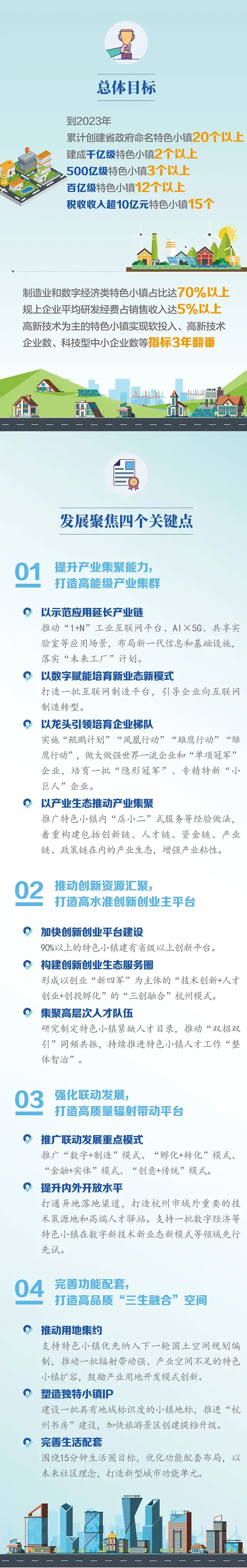 文件明确,到2023年,杭州累计创建省政府命名特色小镇20个以上,制造业和数字经济类特色小镇占比达70%以上。