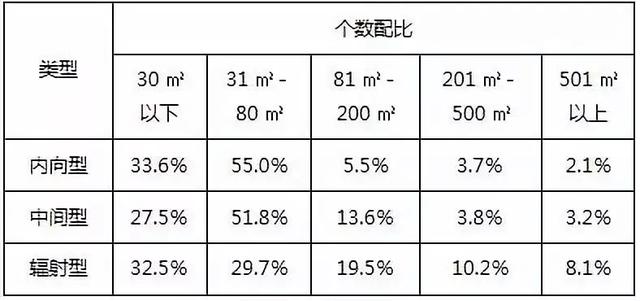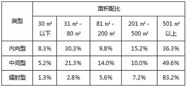 每种业态对于硬件技术指标的要求都不一致,对于铺位面积的需求也各不相同,结合社区商业各业态面积需求,将铺位按面积区间分为“30㎡以下、31㎡-80㎡、81㎡-200㎡、201㎡-500㎡、501㎡以上”五种面积区间。