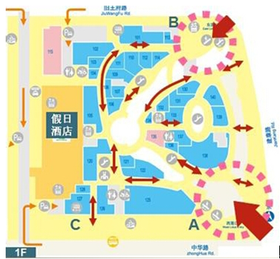 首层动线以东、西两个主次入口形成人流导向,向商场内汇聚人流,形成内部环状动线。西入口位于中华路与健康路交界处,离地铁、公交站台更近,为主要人流入口。夫子庙方向处入口为项目次入口,设置了较大的街边广场,即利于形象展示,又可以为商家提供活动的场地,聚集人气。