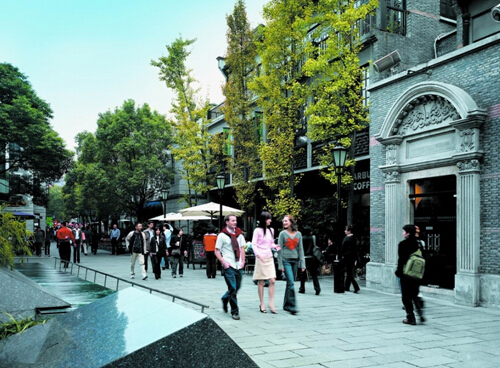地形作为环境的主要组成部分,在线性景观的设计上要进行充分的考虑。运用现有的山地、河流等自然景观资源以及古城墙、老街、废弃的轨道等进行商业空间景观规划,使商业空间成为富有吸引力的景观,减少对原有环境资源的破坏,避免对地形的任意切割,力求做到与周围环境融为一体。植物作为景观中不可缺少的一部分,不仅有美化的作用,还能形成天然的分隔带,最重要的是其生态功能,为空间提供一个绿色、健康的环境。利用植物的景观特性与造景,使商业空间成为一条融于自然的绿色生态景观道,在刺激的消费行为、商业活动中慢下来,享受自然所带来的愉悦。