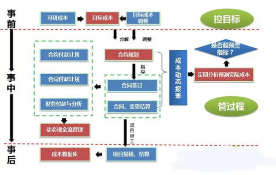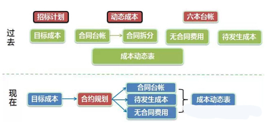 下图中,现在在合约中明确成本费用与成本科目的对应关系,预计将发生的合同,对每个合同进行成本预控,从而实现目标成本预控;减轻了合同拆分工作量、避免拆分过程中的归集错误,但对前期合约编制质量要求较高。