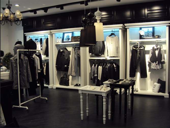 卖场内部最主要的陈列区域是靠墙货架,这些区域就像是商场的边厅一样,更加吸引顾客的眼球。卖场内部陈列的平衡是指件数、色彩、款型和面料上的平衡。