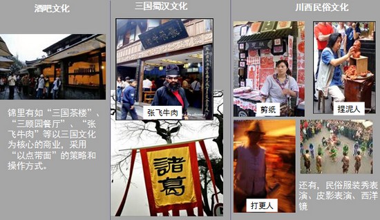 锦里休闲街主要卖的是“文化”,是三国文化的代名词,把文化与商业巧妙的融合起来,使顾客在体验文化的同时进行消费。