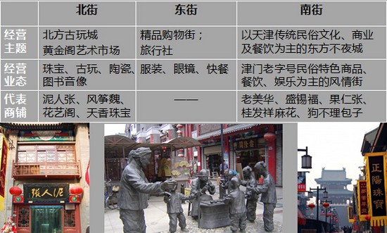 商业街由三部分构成:南街(天津风情街)、北街(古董珠宝街)、东街(精品购物街)