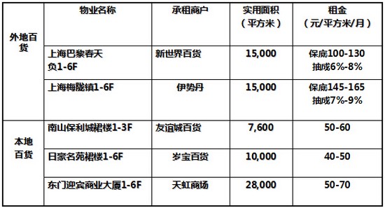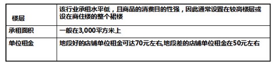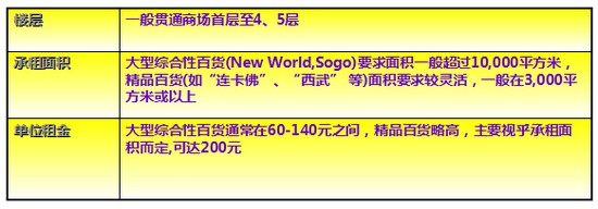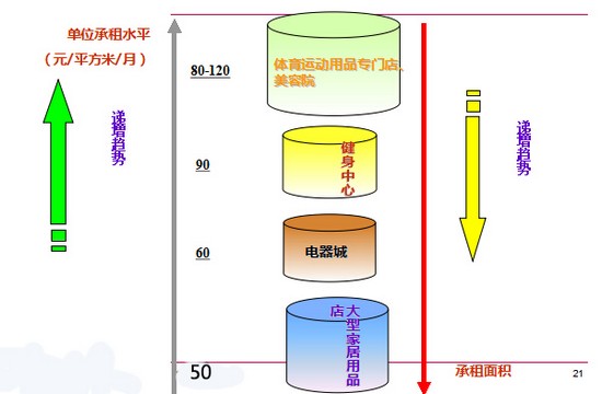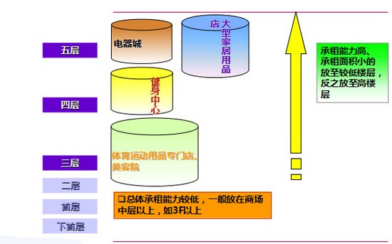 百货公司—承租面积最大,承租水平最高,放在商场最佳位置;