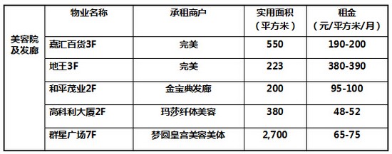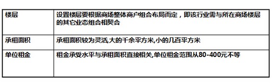 一、各业态商户租金水平及承租面积基本规律