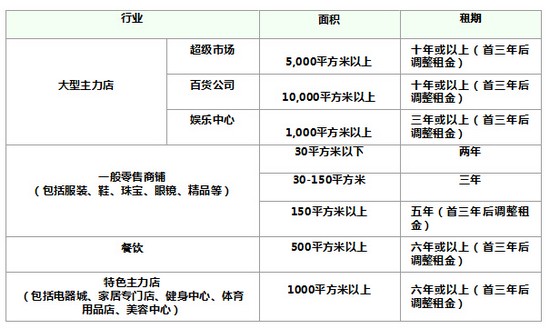 5、大型主力店承租特征总结