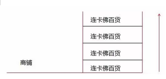 按照商业价值随楼层上升递减的规律,则楼层越高商业价值越低,但设置高层直达扶梯后,由于可从低楼层直达高楼层,如4楼直达8楼,这样4楼就和8楼具有了几乎相同的商业价值。