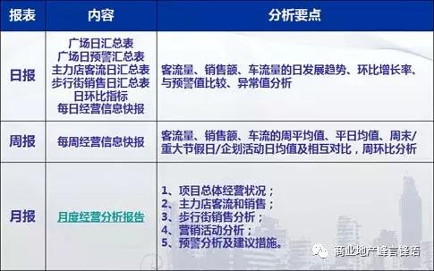 3)关注商铺招商、商铺出租率、商铺经营状态、商铺的贡献度;